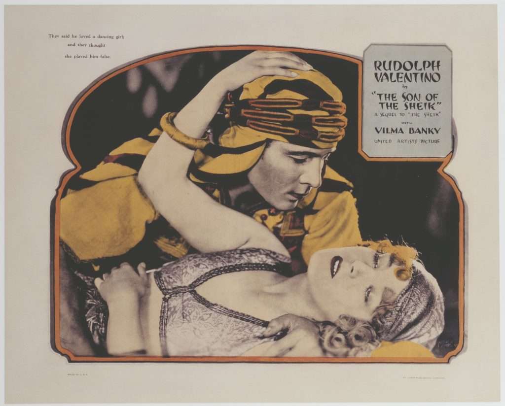 This was The Sheik, in all its outrageous orientalism, the 1921 movie which sent America’s box-office tills into meltdown. All across the United States, vaudeville theatres were being closed and converted into venues for the new silent cinema, whose clientele was strongly female. And these women in the audience were reportedly squirming and swooning and sighing at The Sheik; something in them was seriously triggered by what the movie moguls were calling “the Latin lover”. (A few men were secretly excited too.) Lady Diana was demurely played by Agnes Ayres but the Sheikh himself was that extraordinary phenomenon who introduced America to passion and introduced passion to the cinema: the 26-year-old Rudolf Valentino, born Rodolfo Guglielmi in Italy, who began life as a tango dancer, exhibition dancer and also gigolo-style “taxi dancer” for hire to ladies at afternoon tea dances in Paris, then New York, and who then broke into the new silent movies in California.