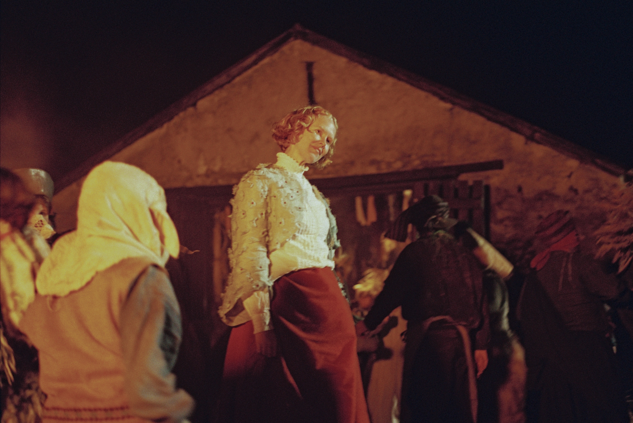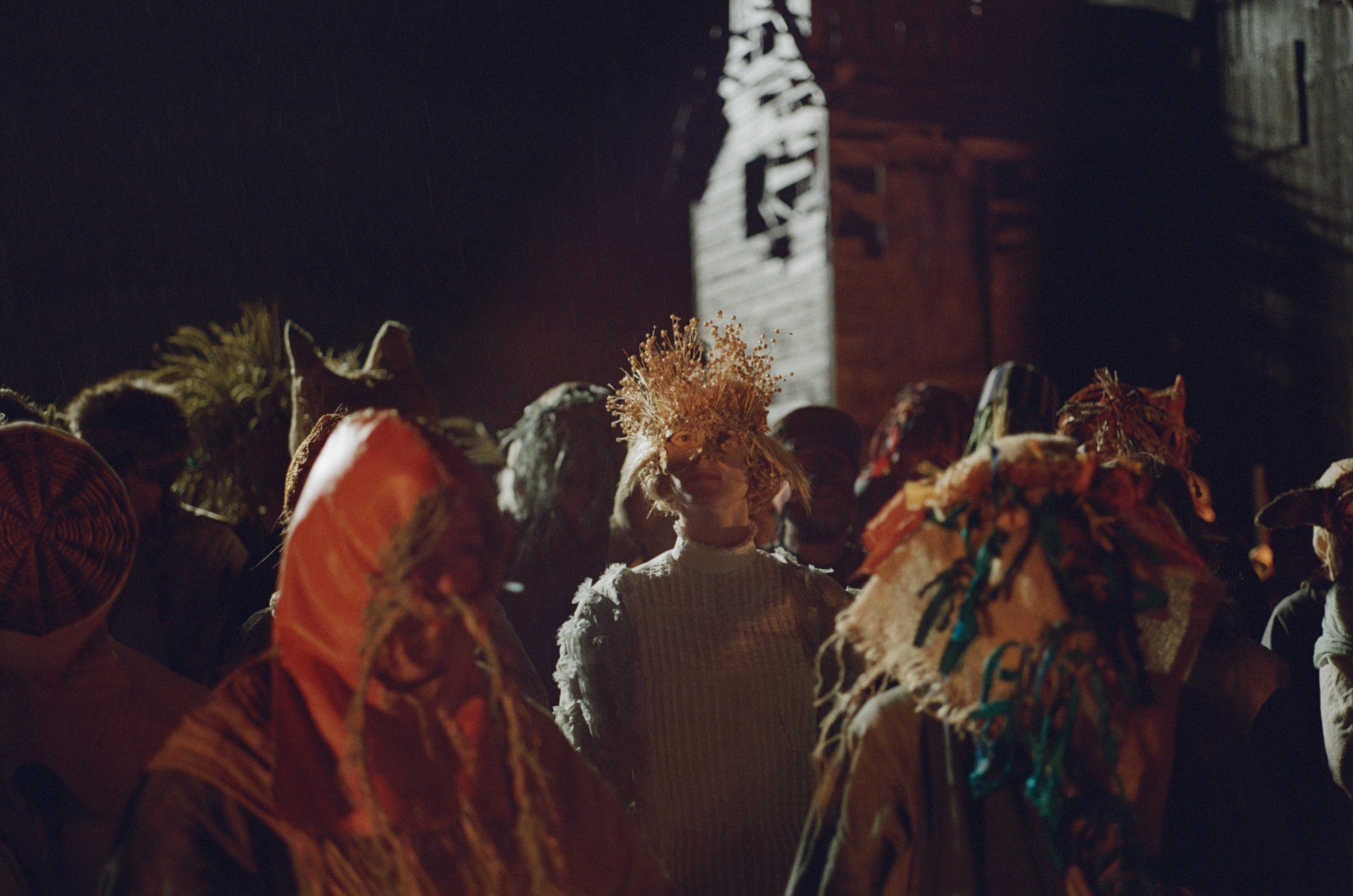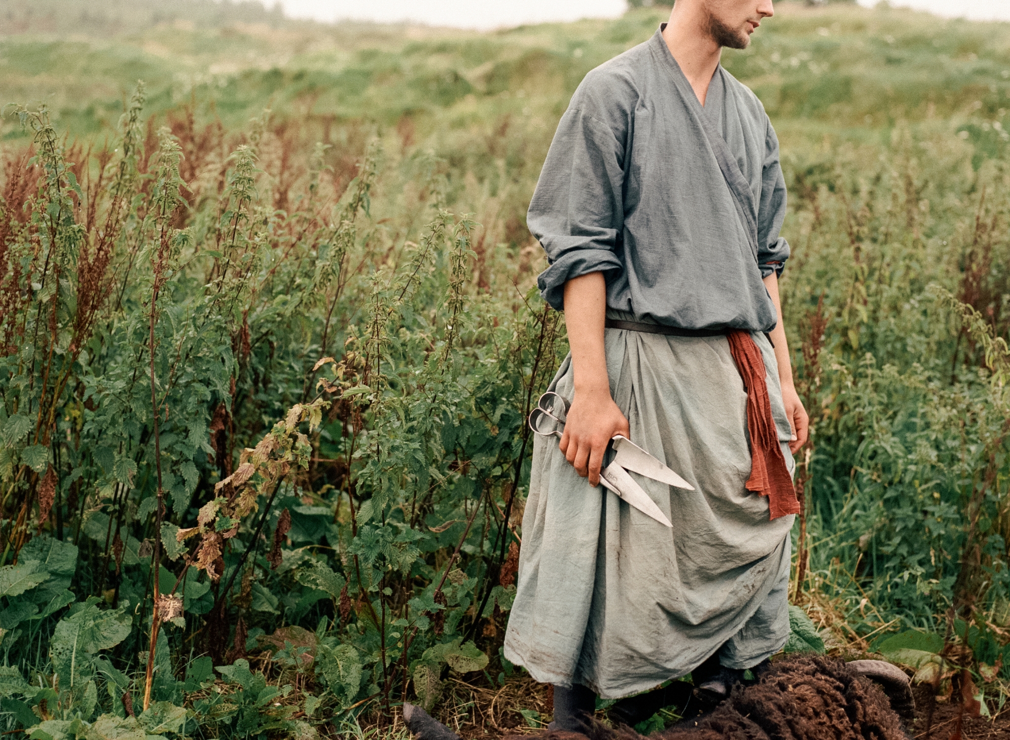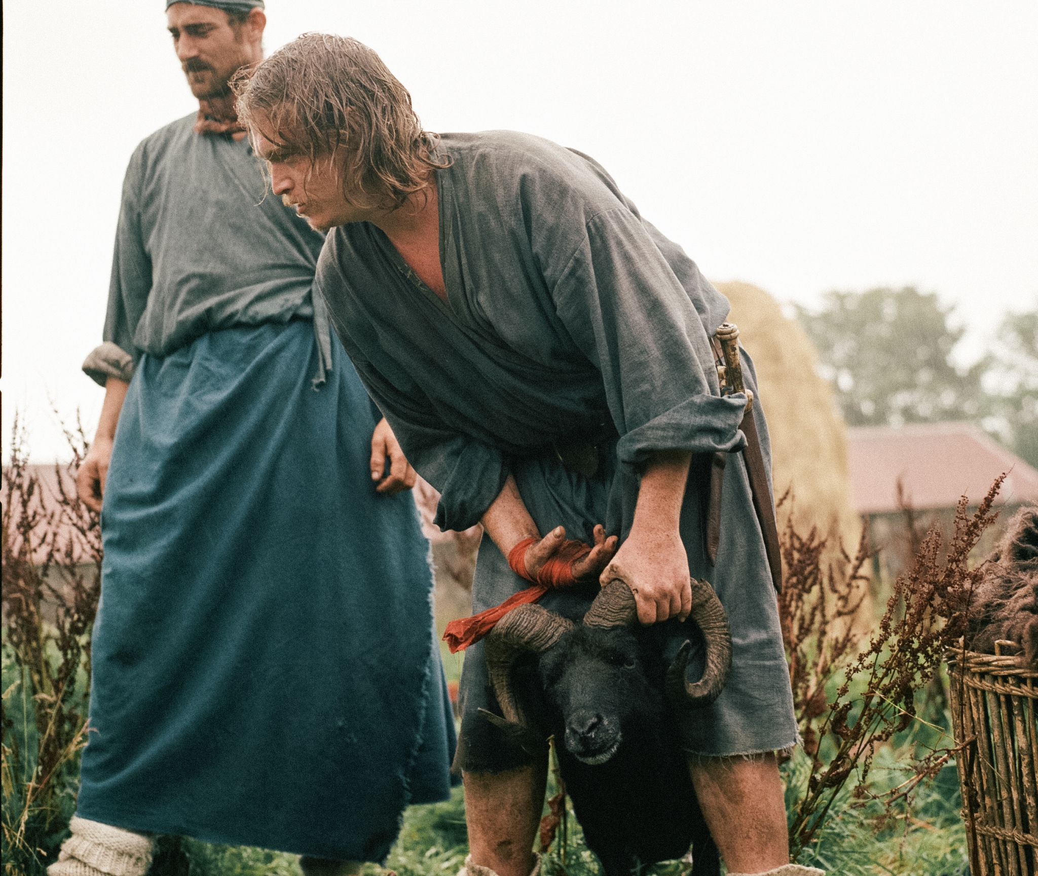 It took six hours, but the water finally managed to crack into my cheap knock-off combat boots. I’d been waddling in mud from the time the sun crept back behind the expansive country fields to deep within the night as rain fell mercilessly upon the ever-drenched ground where plastic tents held for dear life. It was late September 2023, a few miles away from the centre of Oban, where a once plain meadow had been turned into a medieval village for the shooting of Athina Rachel Tsangari’s Harvest.