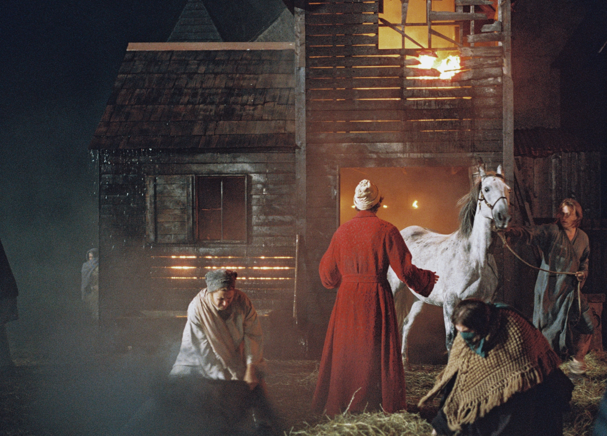 Left to roam before the cast arrived, I walked in and out of the small medieval houses, feeling the last sliver of cynicism drained from my body as I took in the wonder of every detail nested in the dusty nooks and crannies of the village. Chamber pots half full, candles half burned, meals half eaten — but everything created and envisioned in almost magical fullness. To my left, a burnt church; to my right, a creaking water mill. Water and fire and earth, all enveloped by the thick mist of the Scottish autumn.
