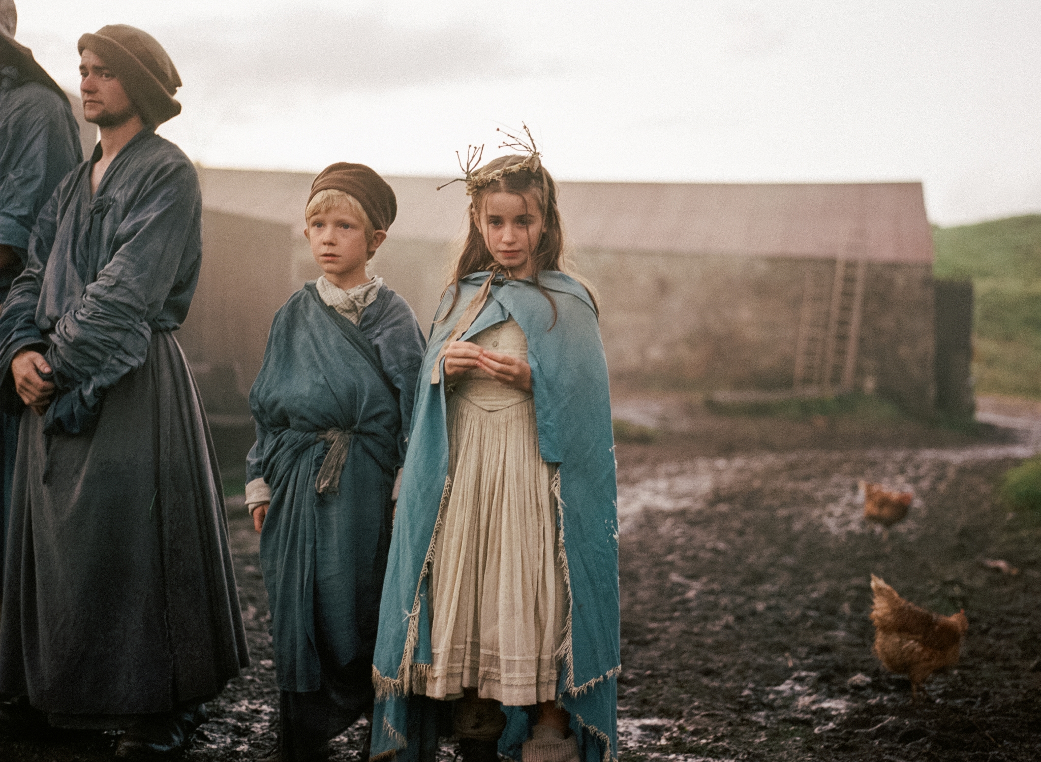 The producers had carefully chosen when to invite me into their highly secretive project: it was a special day on set, a night shoot that consisted of a pivotal dinner scene and an extravagant ritual by a great fire. It was also the day Crace visited his literary world made real, and I walked quietly behind him as his fingers touched crooked doorways and all imposing wooden looms. “Is it just as you imagined?” asked one of the production assistants of the author and his wife. “I don’t know what I imagined,” he said. “But this is beautiful.”