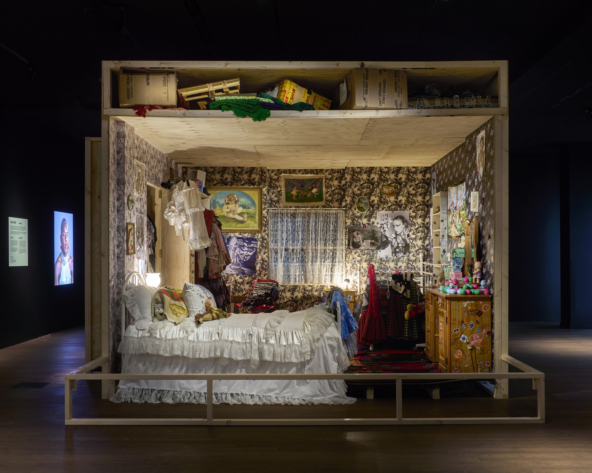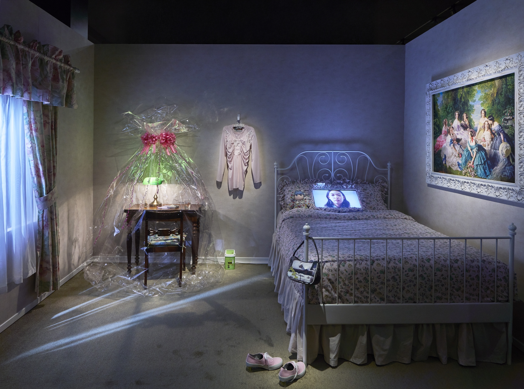 “The room was a way to comment on boredom, a really heightened version of boredom,” notes De Wyngaert, (the second bedroom, designed by Jenny Fax, explores sleep, and the third, by Chopova Lowena, speaks to coming of age; wall text by adolescent psychiatrist Peter Adriaenssens accompanies all three). Other related objects appear later in the exhibition – books, DVDs – while it ends with the boys’ famous quote. “We felt the imprisonment of being a girl, the way it made your mind active and dreamy, and how you ended up knowing which colours went together…” “The layers of understanding [in the quote] inspired me a lot in this exhibition: it’s not one story about girls, but covering more the intricacies and the nuances of girlhood,” says De Wyngaert. “That is so strong in the film, that girlhood is not something that exists in a silo.”