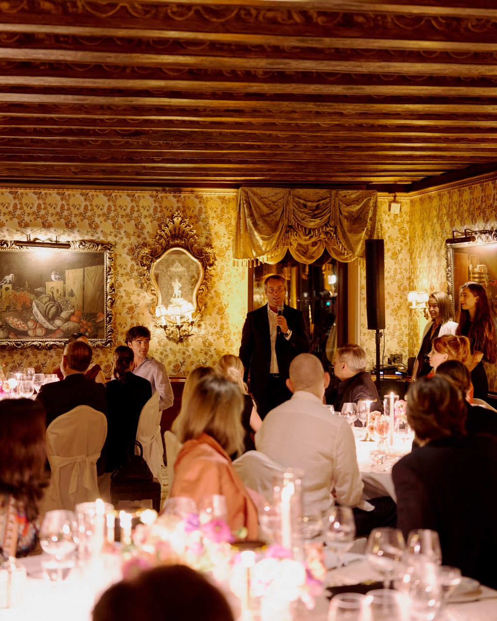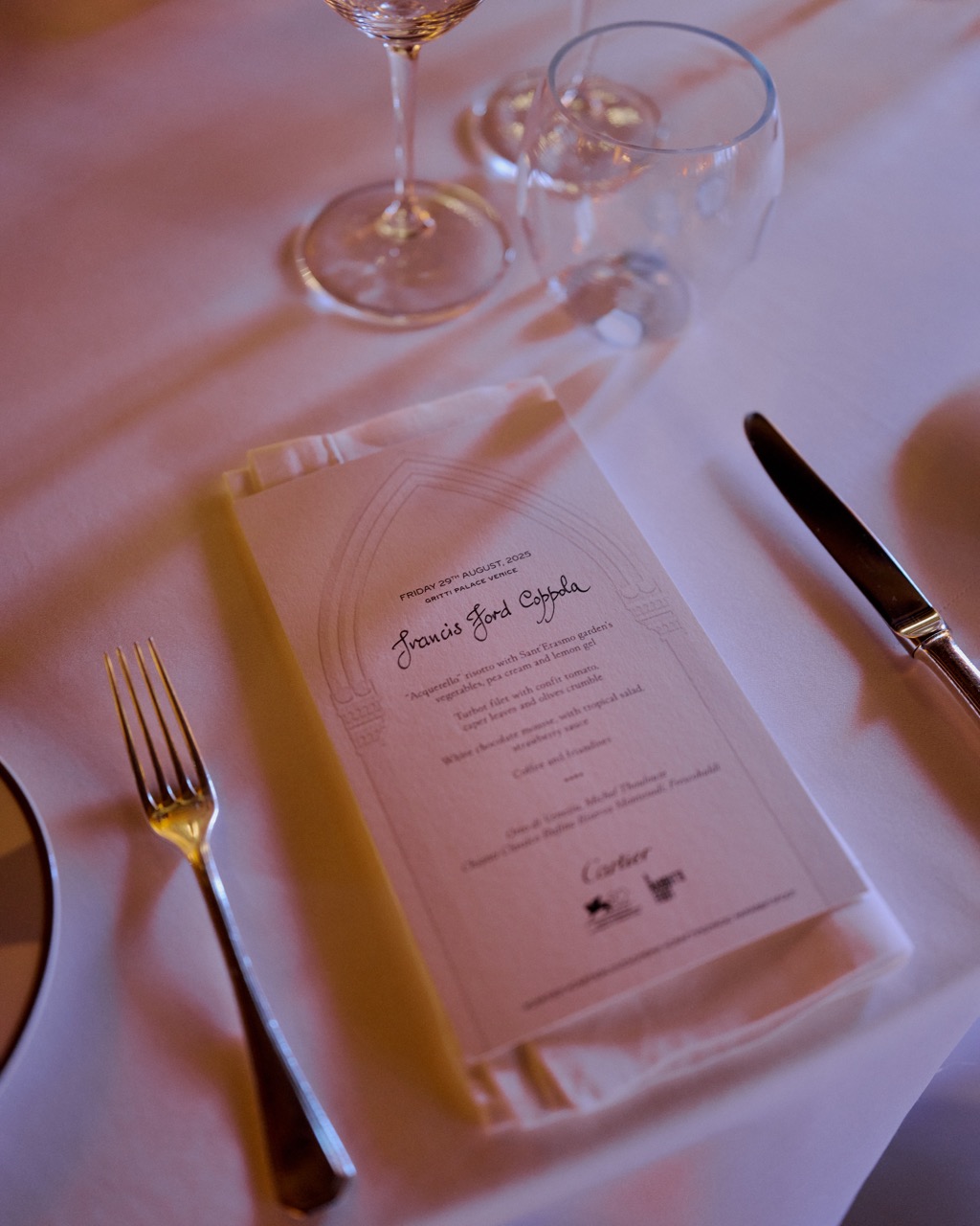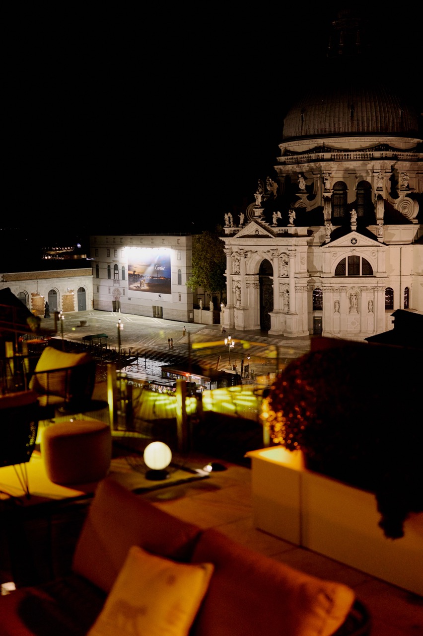 Guests were later led to a private after-party on the Gritti Palace’s rooftop. The festivities continued into the night—and on the dance floor. Actor Rashida Jones caught up with Sofia Coppola, while Gemma Chan and George Mackay mingled with other guests by the terrace. The evening unfolded with sublime views over Venice and the Basilica Santa Maria Della Salute: an almost cinematic backdrop for an unforgettable night with Charles Finch’s A Rabbit’s Foot and Cartier in celebration of the Craft of Cinema.