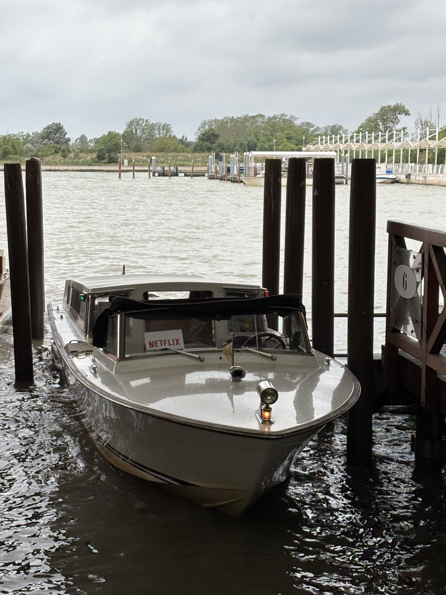 This is my first time at Venice Film Festival. It’s regarded as being more commercial than Cannes, and is seen as marking the beginning of the awards season. Unlike Cannes, Netflix are allowed to première films here, and as we wait for the waterbus to the island, I spy a Netflix boat ready to ferry its executives into the city.