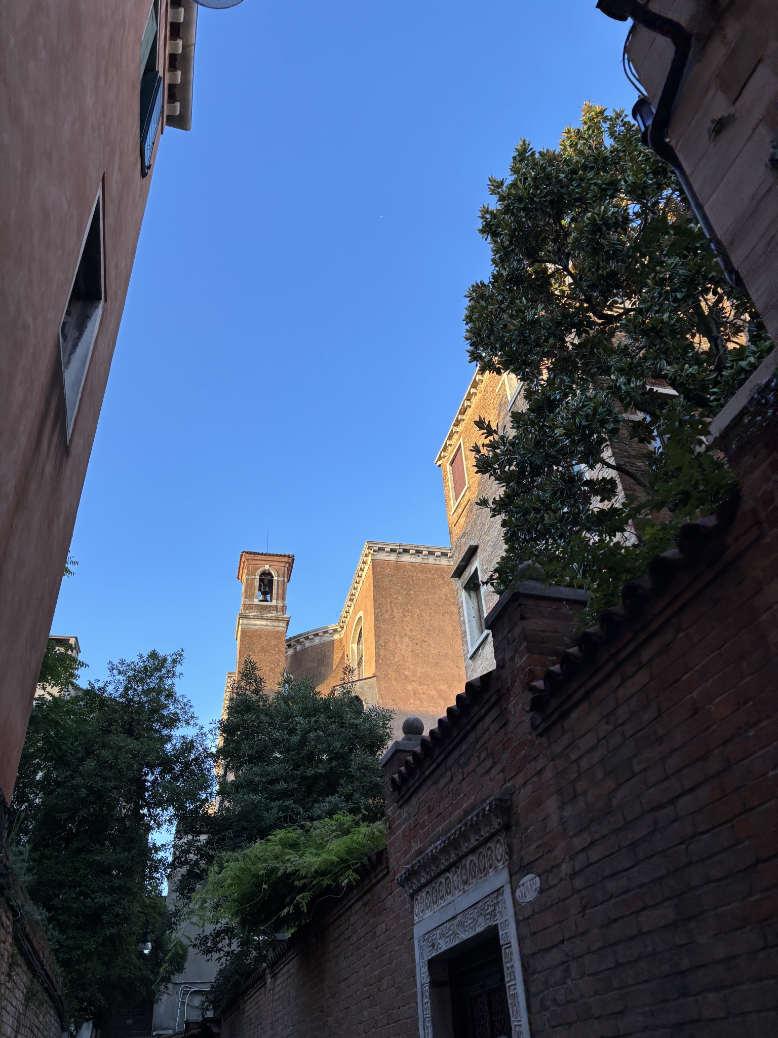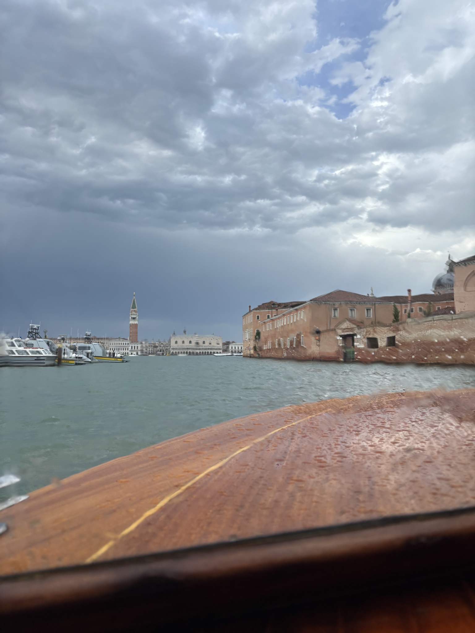 As the evening closes, there is an extreme downpour and crashes of thunder. My colleagues already on the ground had warned me of the humidity and to bring an umbrella and a rain jacket (I brought neither). With all the rain, it feels fitting for Venice to ooze such a gothic atmosphere—a city known, particularly in film, for its oscillations between extreme elegance and horror, from The Souvenir Now to Don’t Look Now.