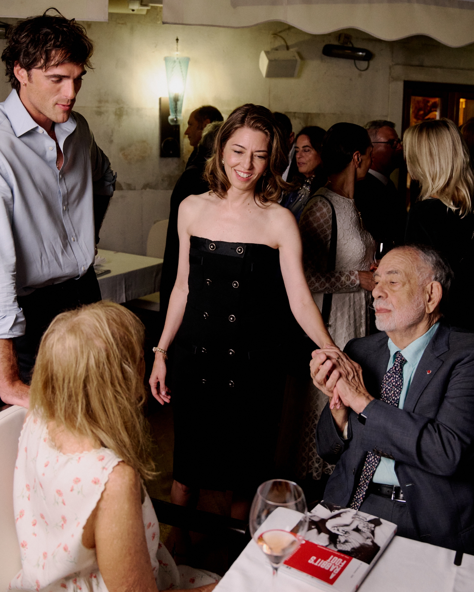 A celebration of the ‘craft of cinema’, the key guests for the evening are Jacob Elordi, the towering star of Guillermo Del Toro’s Frankenstein, due to premiere on Saturday night, as well as Sofia Coppola, in town for her documentary Marc by Sofia and the biggest legend of them all, her father, Francis Ford Coppola. Sofia and her father are very sweet together, holding hands. As they take seats for dinner, he whispers jokingly to her, ‘are we going to see a movie?’