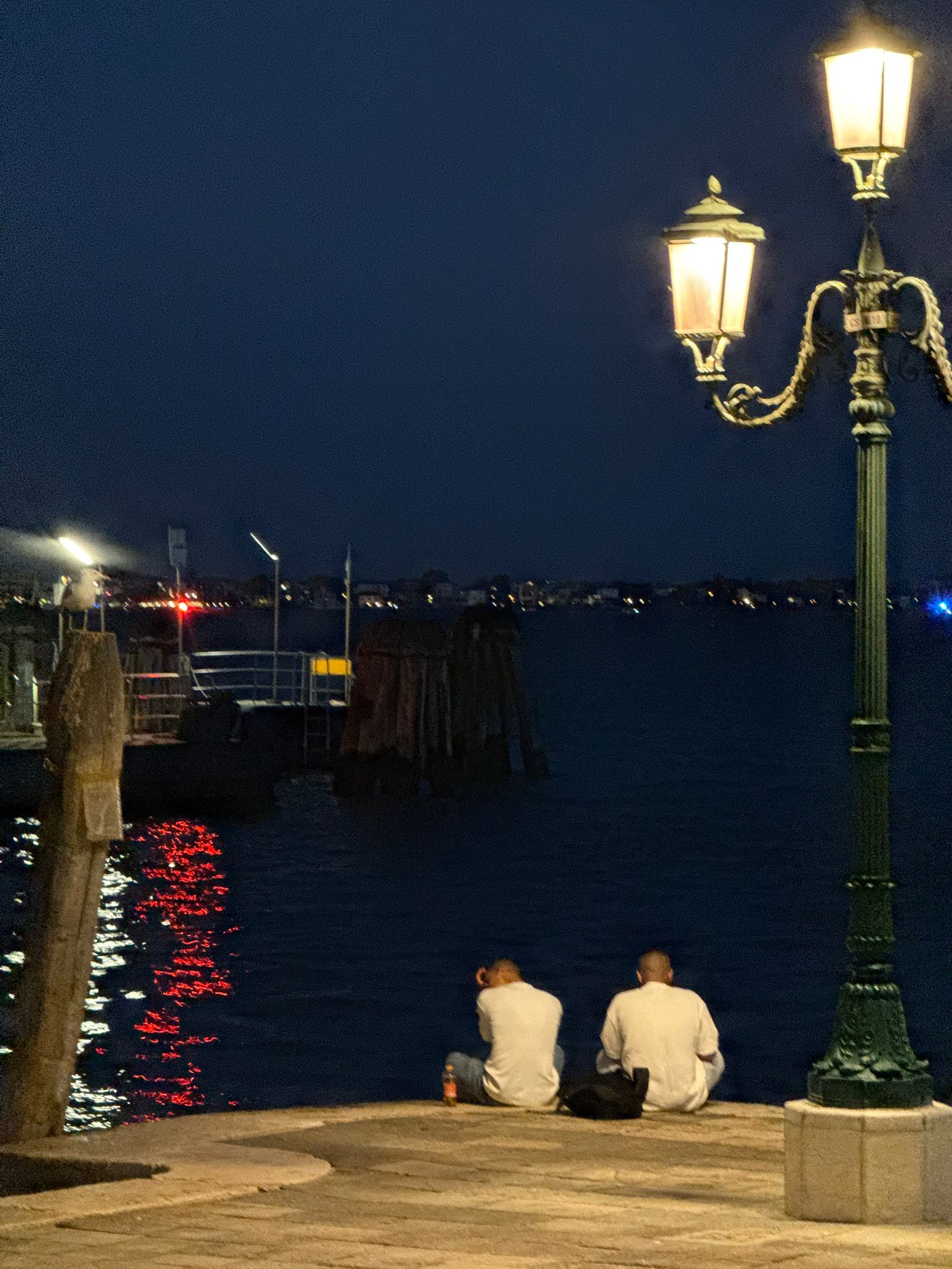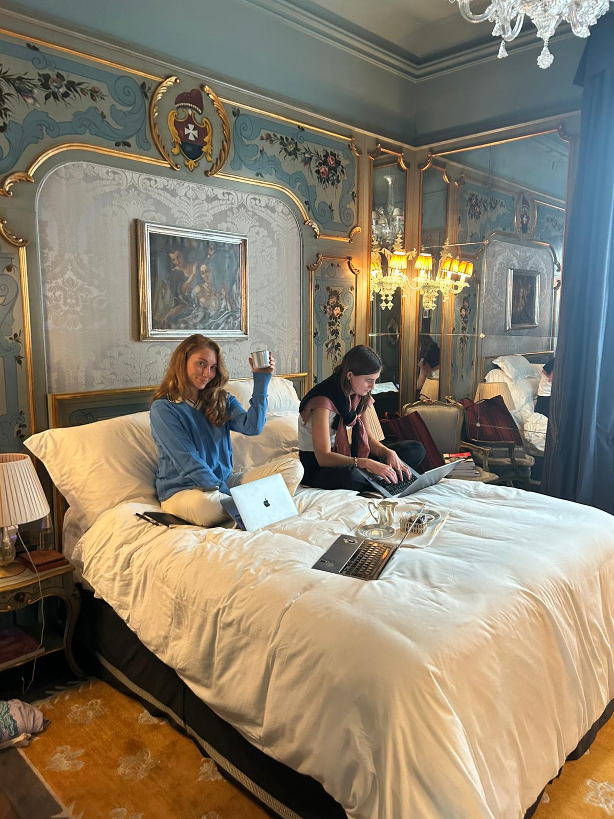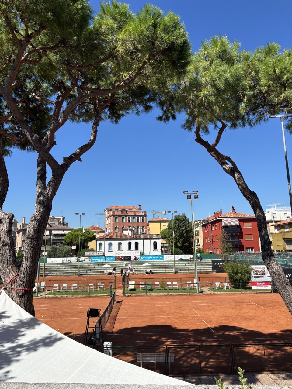 Sunday and Monday pass by in a blur. On Sunday afternoon, I head to the Lido. A 10 minute boat shuttle away from the city, the Lido is a long peninsula of land, 1km wide and 14km long, and far more modern than Venice proper. The festival itself was founded by Mussolini in the 1930s, and all the key buildings are in the white, neoclassical style typical of his regime. The ‘Golden Lion’, the festival’s key prize, used to be called the Coppa Mussolini. I meet Chris and Luke from my team at the Albergo Quattro Fontane, a sort of chalet-style restaurant and hotel near the shuttle drop-off which is filled with industry people and often hosts parties and junkets. There, we bump into Lina Soualem, who is on the jury of this year’s Critic’s Week—her own film Bye Bye Tiberias, explores the story of her mother, the actress Hiam Abbas (you might recognize her as Logan’s third wife in Succession) who is Palestinian. Soualem herself wears a Keffiyeh over her shoulders. She has rented a bike with which she can nip up and down the Lido with (I noticed it’s a hack shared by many more seasoned Venice festival goers).