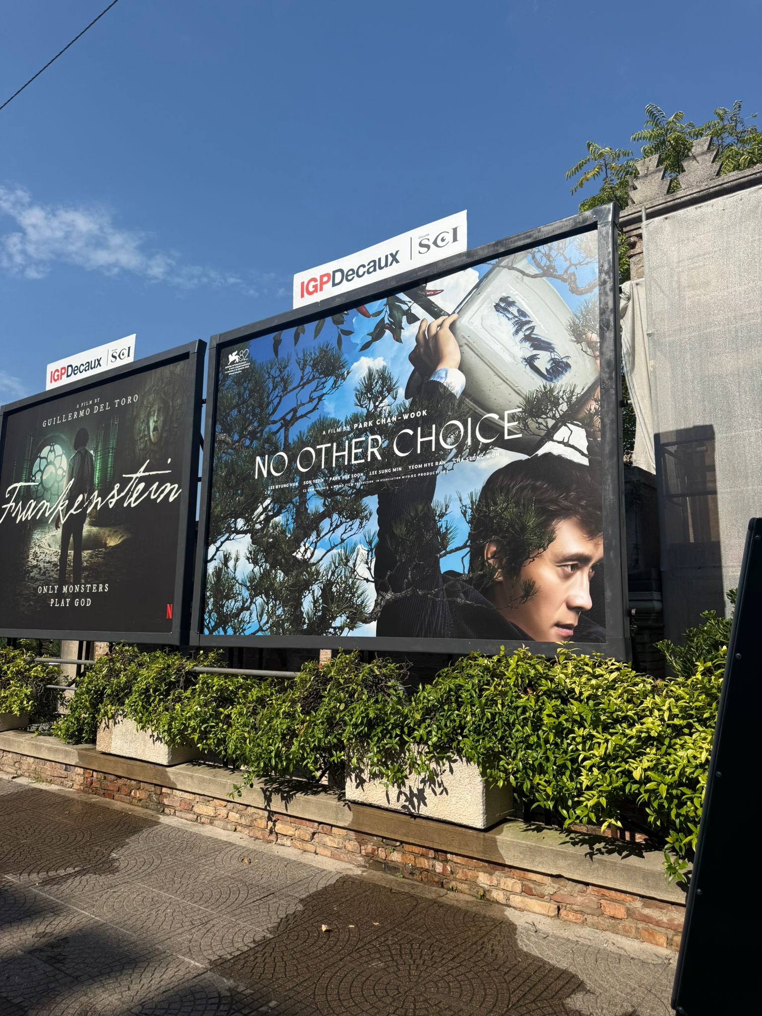 After the screening—which receives woops when the beloved film critic Sophie Monks Kaufman appears on screen in a cameo—I meet Luke again at the Quattro Fontane. (He is there to interview Thai director Nawapol Thamrongrattanarit on Human Resources, one of his festival favourites.) Then I head to the Casa I Wonder, where I interview Kaouther Ben Hania about The Voice of Hind Rajab which I had seen the day before. The hotel is on the beach, and I realise it’s the first time during the festival I have actually seen sand. Ben Hania is extremely charming and speaks passionately about her film (you can read my interview here), jokingly telling one of her cast members off when they make too much noise during our junket. I also spot James Wilson, who, best known as Jonathan Glazer’s producer, is a producer on the film along with Odessa Rae and Mime Films & Tanit Films. He is with his wife, a costume designer who has styled the director and her cast for the Biennale. After this I head—extremely sweaty—to 1 Via Istria, and a more suspect location called something like Hollywood Celebrity Villas (Women in ballgowns hopefully mill around the foyer area.) I interview Jackman about 100 Nights (my interview is coming soon!). I make the mad dash back to the city, sweltering and swarming with tourists. News of Giorgio Armani’s breaks while I am on the vaporetto, but no one seems to react. I get the water bus to the airport. The journey is long, and I start to feel a bit seasick. I am glad to get back onto dry land.