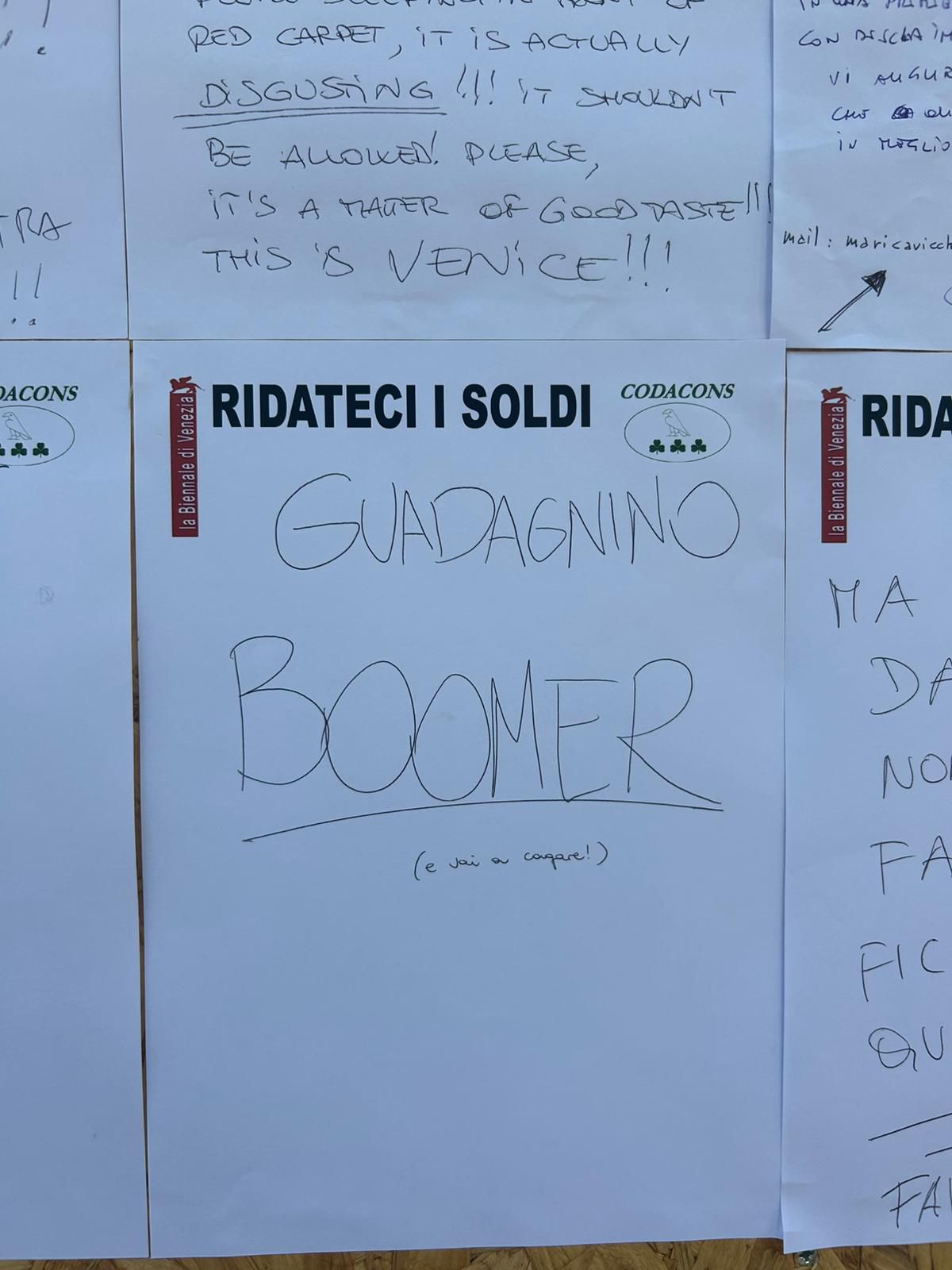 On Monday (after another trip to the Cipriani, where I spot Dior boats mooring), I meet the Magic Farm director Amalia Ulman on the steps in front of the Casino Lido. I walk past a wall of audience-made posters near the festival entrance and I chuckle at a sign that says ‘Guadagnino Boomer’ (his #MeToo drama After The Hunt, has received a mixed reception). I first came across Ulman for her work as an artist, in particular her series Excellences & Perfections, a performance piece, where, on Instagram, she played a proto-influencer who had a mental breakdown. She tells me she calls it her “first film” for the way she scripted and staged it. I am surprised when Ulman, who is Argentinian, tells me that she treats Venice Film Festival like a holiday, and the Lido, modern and on the beach, reminds her of home. She has just been to see Sofia by Marc, the Coppola documentary, which I am also about to see. It’s pure catnip for fashion lovers, going inside the office at the Marc Jacobs office in the lead up to a show. Amalia tells me she loves it because Chloë—who also stars in her film Magic Farm—makes many appearances. I get back home on an overcrowded shuttle, slightly wishing I was staying on the Lido, and could join Amalia on her holiday.