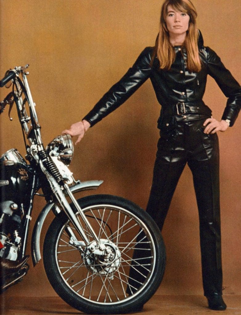 When Mandiargues’ racy erotica was adapted for the film Girl on a Motorcycle in 1968, the pop musician Marianne Faithfull’s take on Rebecca and the iconic leather outfit would only further the uniform’s difficult relationship between sex and power. Faithfull was a prominent figure in the Swinging London scene, and the film—dubbed Naked Under Leather in the US—was the first to receive an X-rating in America for graphic sexual content.
