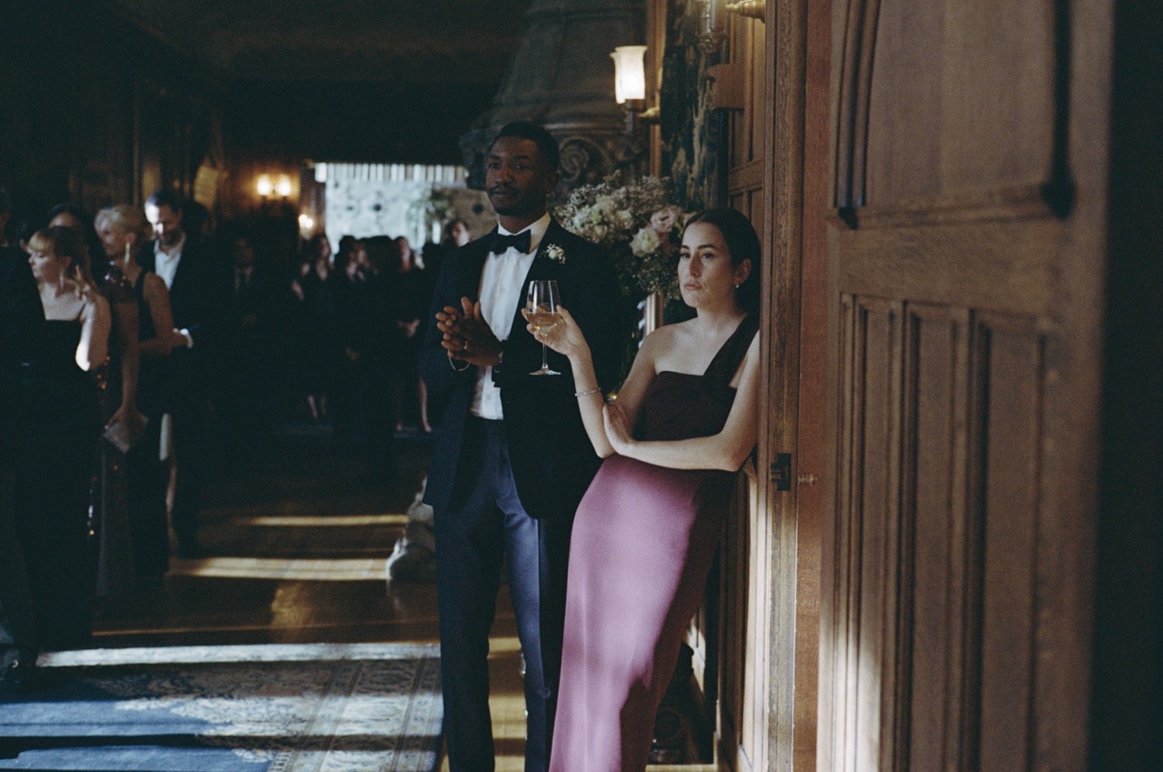 The second signature that I wanted to talk about are these sort of incongruous pairings, whether it’s throwing an orange puffer over a wedding dress in The Drama; a worn-in Carhartt jacket over a floral dress in Materialists; or a button up over a slip in Past Lives. How do these moments make themselves known to you?