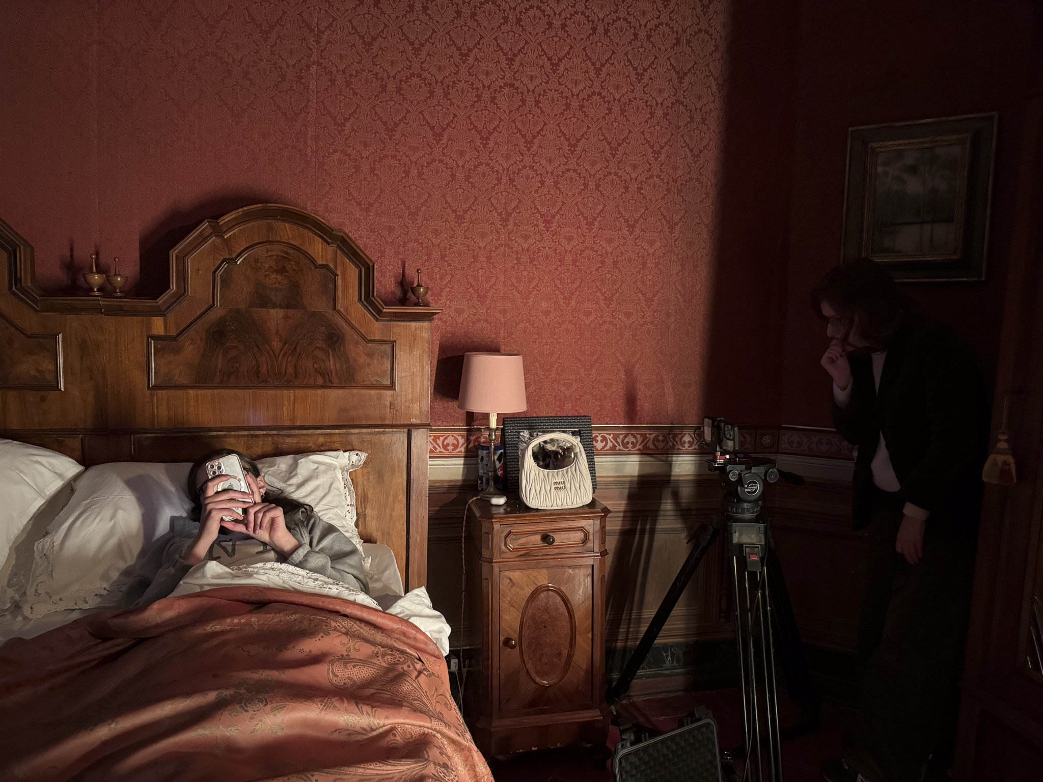 I thought of this while watching Joanna Hogg’s Autobiografia di una borsetta (Translation: Autobiography of a bag, or ‘little bag’ to be precise). The 29th film in Miu Miu’s Women’s Tales—the fashion brand’s platform for female-led short films—Hogg takes the perspective of a handbag, as it passes through the hands of different owners, refashioning the accessory as a kind of bystander with subjectivity, sentience and even a hint of agency. When approached to participate in the series, Hogg had recently received a copy of a book by her friend, the academic JD Rhodes, The Prop (written with Elena Gorfinkel). “It looks at the role of the prop in the cinema that has never really been done before. The prop as a vehicle for a cinema,” Hogg tells me, from a quiet corner of the Mayfair Townhouse in London.