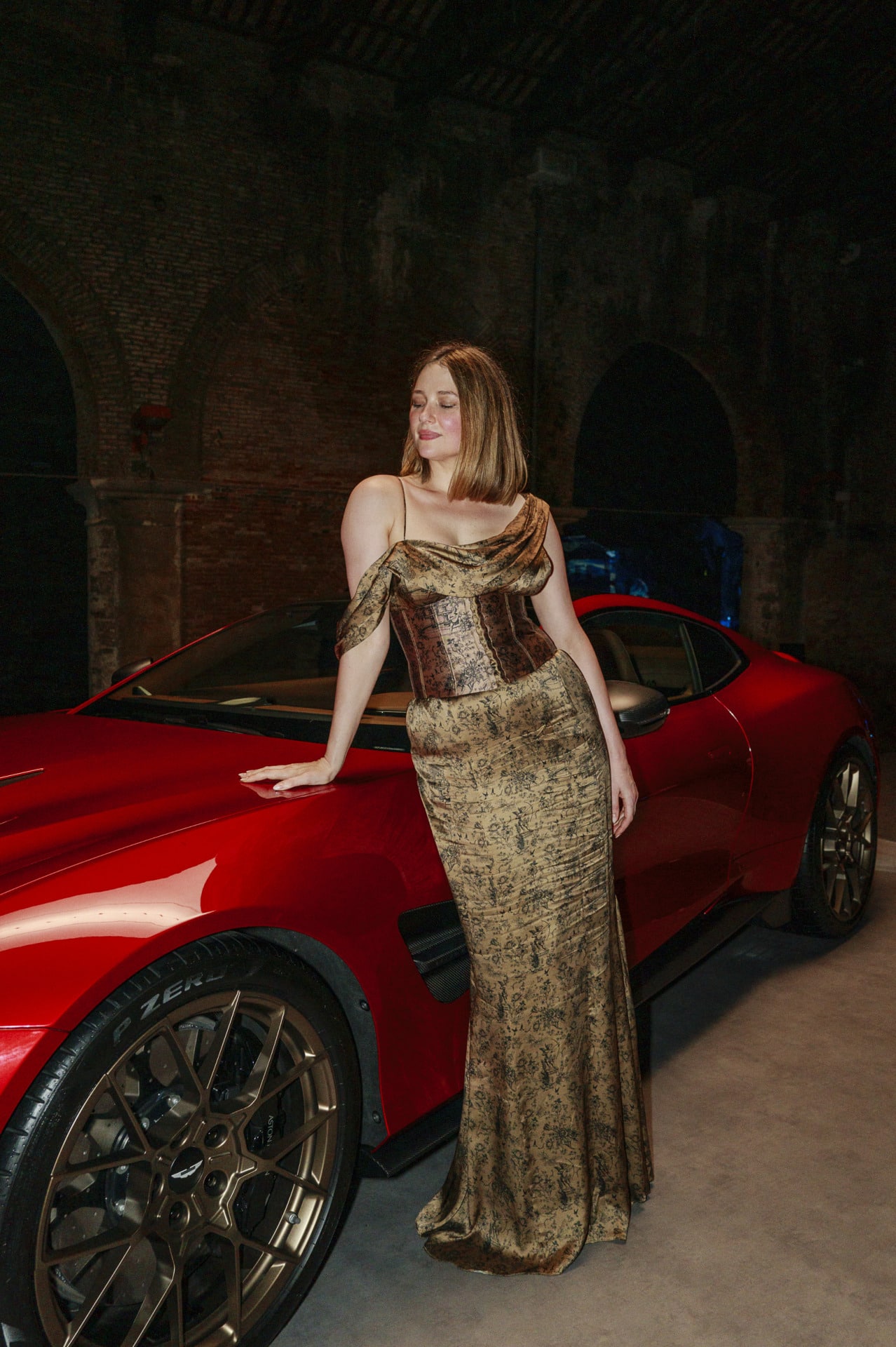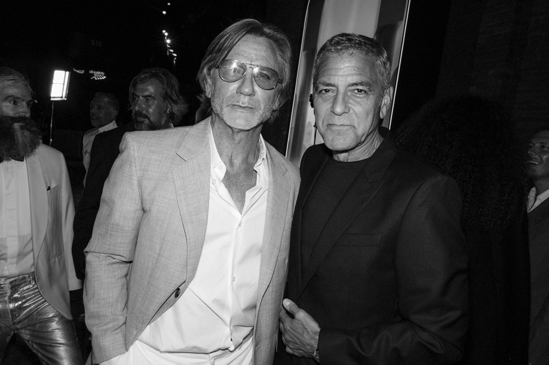 As expected, it was a night straight out of a James Bond film. Located in the historic Arsenale Vecchio, a naval shipyard that dates back to 1104, we began by crossing the water in a private boat that took us into the heart of the party. The event—co-produced by Finch + Partners—included guests from the world of arts and film such as Daniel Craig, Michael Douglas, George Clooney and Amal Clooney, Adrien Brody and Georgina Chapman, Gemma Chan and Dominic Cooper, Benedict Cumberbatch, Kevin Costner, Joe Alwyn, Cailee Spaeny, Michael Ward, Poppy Delevingne, founder of streaming platform MUBI Efe Cakarel, Joe Wright and Haley Bennet and Marisa Abela. Sandy Powell also attended with Catherine Buyse Dian (who designed costumes for Mission Impossible, Spider-Man: Far From Home and Indiana Jones and the Last Crusade).