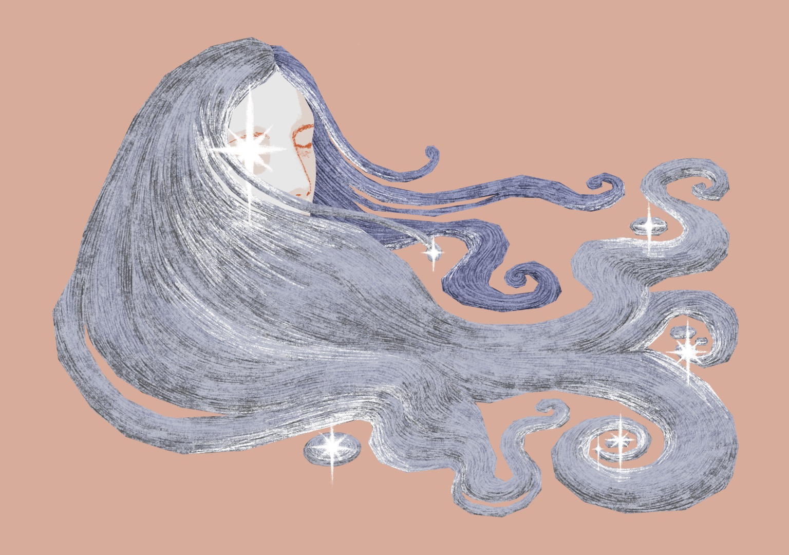 After some hours I realise I am hungry and I feel my phone vibrate. It is Marion. She has ‘hearted’ the photograph I sent of the fountain and has sent one back of her and Emerald holding complicated drinks and smiling. She has also sent two pink heart emojis and one sunshine one. She is a good daughter. We are approaching each other. She looks forward in anticipation while, from ahead of her, I look backwards in knowledge, and sometimes also in regret. I see her looking forward and I wonder, does she see me looking backward, seeing her? Or, is her line of vision like a stranger’s in the street, passing and never meeting my own? My hunger is causing my attention to drift. I am wasting precious moments with my fountain, but I must find something to eat. In the café they are selling sandwiches wrapped in foil. I choose one and eat it as fast as I can, resentful of every bite that draws me away. Afterwards, I return to my squat against the gallery wall. Apart from my fingers, which twist the ball of foil from my sandwich between them, I am still. My fidgeting hands unfurl the foil and smooth it on the cold floor. They rip strips of flattened foil and wrap them around my fingers so their tips are foil-capped, hard and taloned. I avert my gaze from the fountain to admire my new silver claws. I understand what I need to do. I tear the foil and wrap a thick band of it around my wrist. I wet my lips and my cheeks so that the torn, jagged pieces of silver foil stick to my skin. I cut and dab disks of the stuff onto my eye-lids, so that when I blink I am an open-eyed silver beast of a thing. I sit there, silent, blinking, shining.